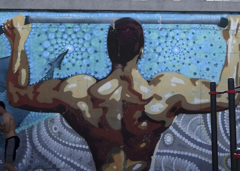 A man practices in an outdoor gym during the 2018 soccer World Cup in Kazan, Russia. (June 29, 2018)