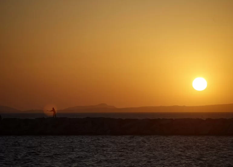 A fisherman holds his his fishing rod at the port of Piraeus, near Athens. (June 28, 2015)