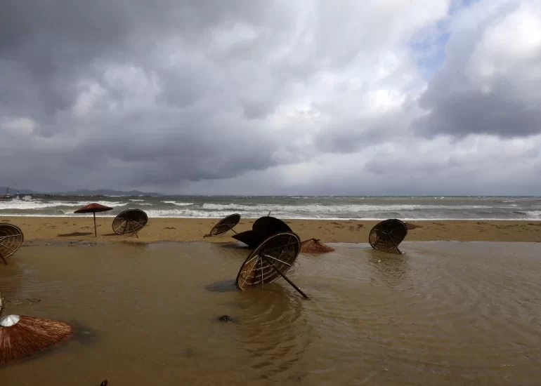 A fisherman with his boat leaves the port of the tiny Aegean island of Chalki, southeastern Greece. (November 5, 2021)