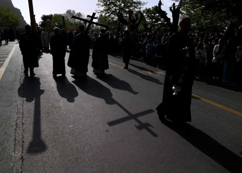 This year, the Resurrection was celebrated once again at midnight Saturday after pandemic measures had brought it forward to 9 p.m. the previous year. By midnight, the ‘Holy Light’ — lit miraculously, the faithful believe, at Jerusalem’s Church of the Holy Sepulchre on Saturday — had reached almost all parishes across Greece, having arrived by plane in Athens and greeted with all the honors due a visiting head of state.