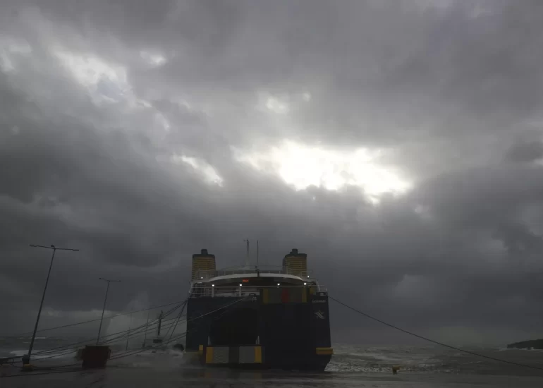 A ferry remains docked due to bad weather at the port of Rafina, east of Athens. (September 27, 2018)