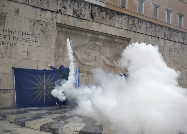 Farmers clash with riot police during a protest outside Agriculture ministry in Athens.(February 12, 2016)