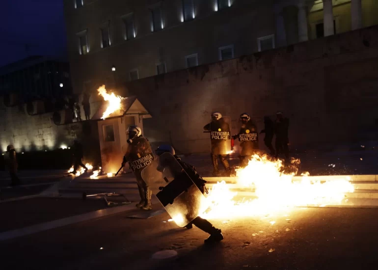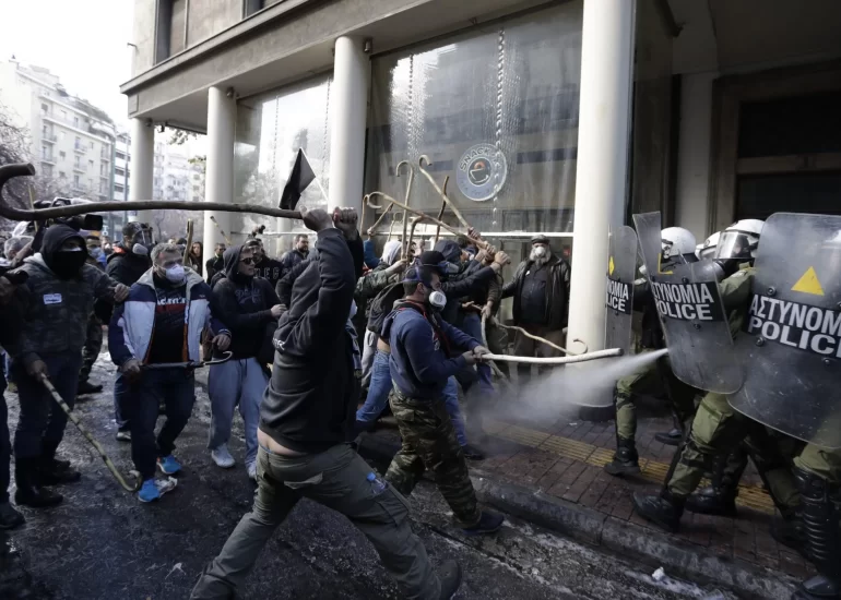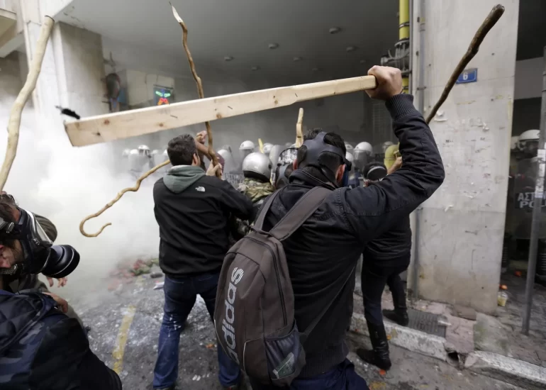 Riot police clashes with protesting farmers from the Greek island of Crete outside the Agriculture Ministry, in Athens. (March 8, 2017)