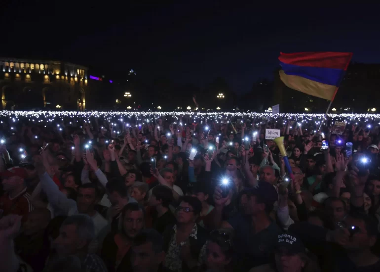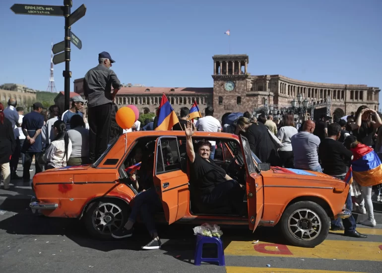A woman waves from a car as supporters of the opposition lawmaker Nikol Pashinian hold a rally in the Republic square in Yerevan. The man who spearheaded weeks of protests in Armenia was chosen on Tuesday, May 8 to be the country's new prime minister, and carries the weight of high hopes for a turnaround in the impoverished former Soviet republic. (May 1, 2018)