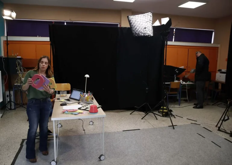 “We’re trying to keep everyone in touch, the kids with their teachers and the kids with each other,” says Ioanna Kabouri, principal at the preschool in the mixed-income Halandri area, north of Athens.