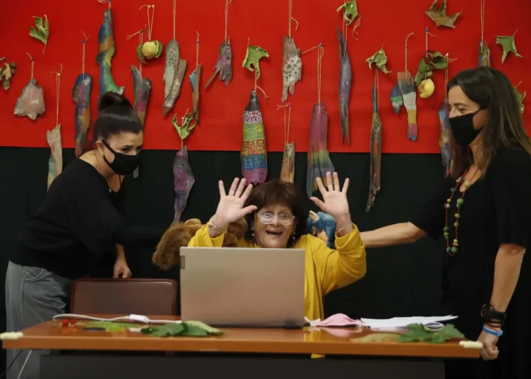 Jo and Joo, hovering over a laptop camera, bob to music and welcome 4-year-olds as they appear onscreen: “Hello Marios!”…“Oh Theodora, you have the Christmas tree up already.” Finishing each other’s sentences: “There is this virus that has closed all the schools. But we can keep playing and learning new things.”