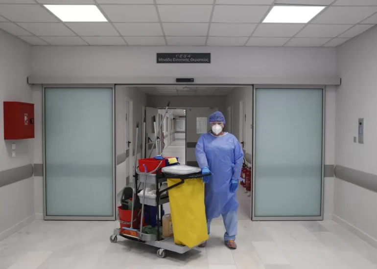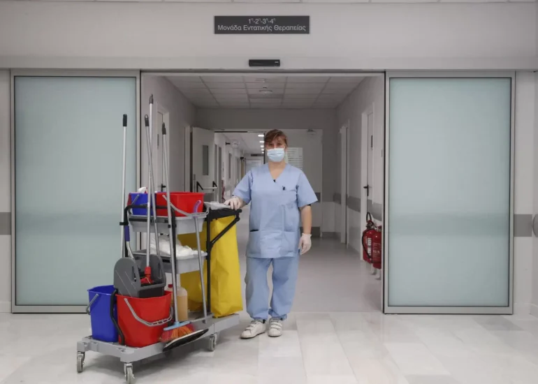 “I can’t separate it from medical work or nursing work. It is equally important,” said Antonia Koutsoukou, professor of intensive care pneumonology, citing the control of infections, a major issue in hospitals and particularly in ICUs. Koutsoukou is the director of the Athens University respiratory diseases clinic at Sotiria.