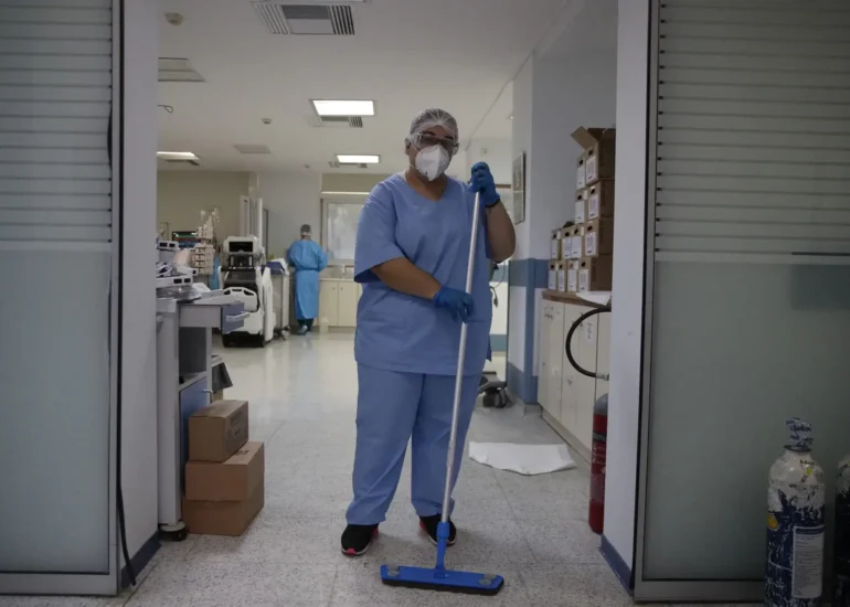 “There were many people who were being called on to come to work, and they wouldn’t come because they were afraid,” Tsiolou said. Many of her colleagues quit, leaving cleaners short-staffed.